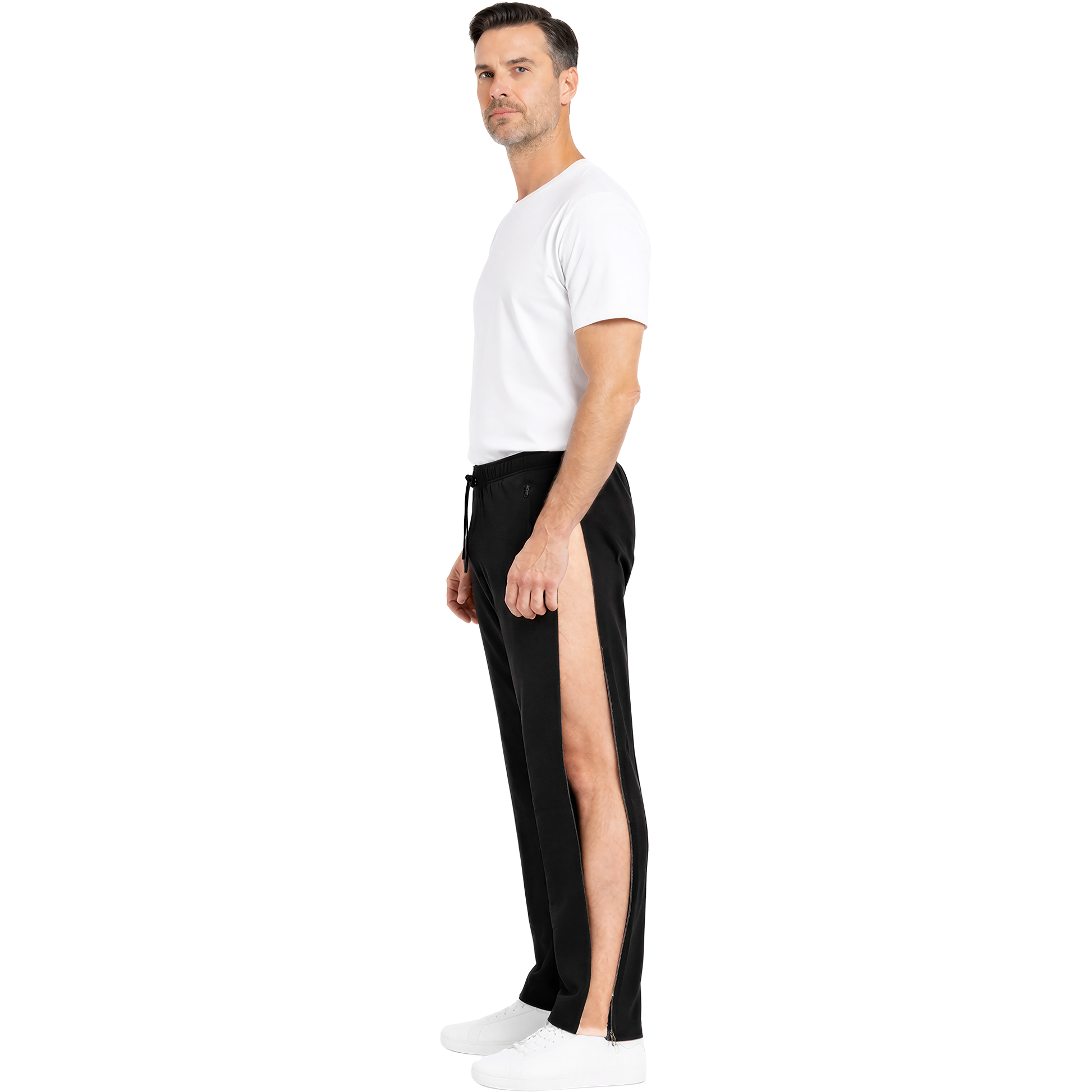 De långa, delbara dragkedjorna längs sidorna gör byxan mycket enkel att ta av och på – även när du sitter ner. Perfekt för vardag, rehab eller när du bara vill ha maximal komfort.