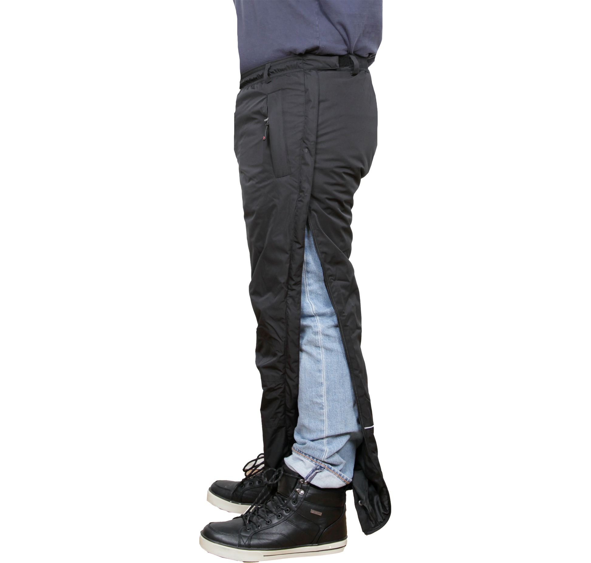 Byxan är lätt vadderad och ger behaglig värme utan att kännas tung eller stel. Långa, delbara dragkedjor längs sidorna gör den enkel att ta av och på, både sittande och stående, och ger extra flexibilitet i olika vardagssituationer.